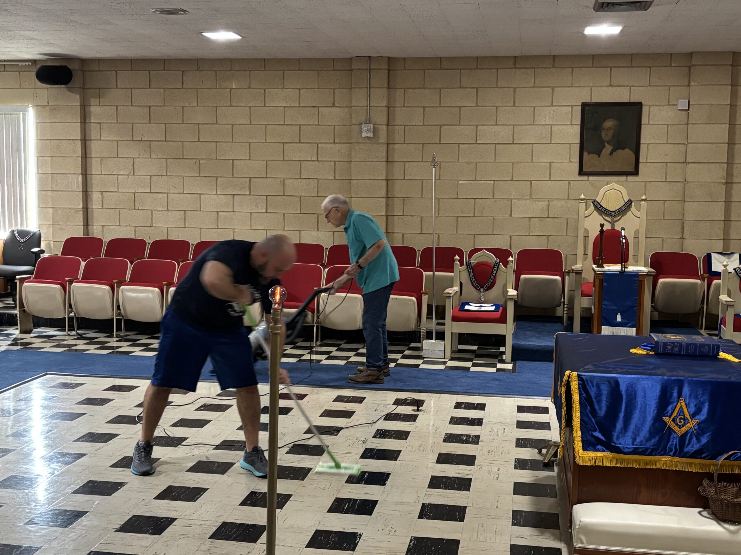 Lodge work day. Thanks to the Brothers who came out to make our Lodge look beautiful. We look forward to receiving our DDGM on March 19. Come on out and fill the seats!